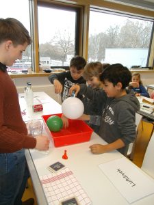 MINT ist die Beschreibung der Fächer Physik, Chemie und Mathe. Als Erstes wurden die Kinder in Physik in Gruppen aufgeteilt und durften dann selbst experimentieren. Hier wurden viele spannende Versuche zum Magnetismus gelöst. Im Bereich der Chemie ist ein Experiment vorgeführt worden. Anschließend durften die interessierten Viertklässer mit Säuren Versuche zur Farbveränderung durchführen. Am Ende durften die Kinder in Mathe wieder eigens knifflige Aufgaben lösen. Es war für die 4. Klasse ein sehr interessanter und lehrreicher Tag und vielleicht wurde dem ein oder anderem Schüler klar, ob dieser Bereich etwas für ihn wäre.
