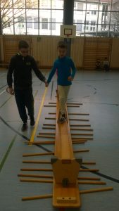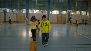 Das Gleichgewichtssystem spielt eine wichtige Rolle in unserem Leben. Viele Kinder bewegen sich jedoch nicht mehr ausreichend, deshalb haben sich die Klassen 1a und 6a gemeinsam auf ein „Piratenabenteuer“ begeben, bei dem es vor allem auf die Balancefähigkeit ankam. Die Großen unterstützten die Kleinen und gemeinsam wurden Strategien entwickelt, die Hindernisse der „Pirateninsel“ zu überwinden.