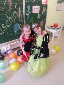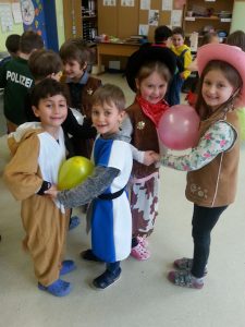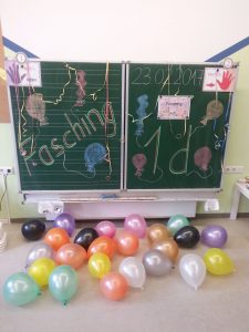 Am unsinnigen Donnerstag veranstaltete die Ganztagsklasse (1d) am Nachmittag eine Faschingsfeier. Dabei wurde viel getanzt, gesungen, gespielt und gelacht. Besonders lustig fanden die Kinder den Luftballontanz. Als Stärkung gab es unter anderem Schokokuss-Indianer.