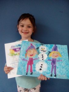 Da war die Freude groß! Xenia gewann bei dem Malwettbewerb der Raiffeisenbank Straubing den 1. Preis in der Jahrgangsstufe 1 und 2. Ihr Bild zeigt eine Lieblingsbeschäftigung im Winter: Ich baue mit meiner Freundin den Schneemann Olaf. Die Siegerin konnte sich über einen Gutschein freuen. Mit Sachpreisen wurden Moritz und Aurelia aus der 1c schon eine Woche vorher prämiert. Jetzt freut sich die ganze Klasse auf das neue Malthema.