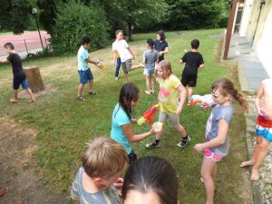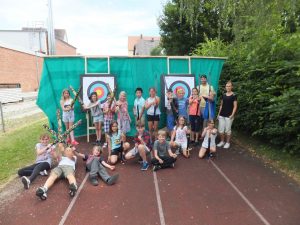 Anschließend kam Herr Stefan Magerl, der mit uns einen Kurs zum Bogen schießen durchführte, welcher auf große Begeisterung stieß. Im Anschluss fand unser persönliches Highlight statt: eine Wasserschlacht. Mit Wasserspritzpistolen und Wasserbomben machten wir auf unsere Lehrer eine gnadenlose Jagd, die sich jedoch zu verteidigen wussten. Am Abend teilten wir unseren Schatz, saßen gemeinsam am Lagerfeuer und aßen unser Grillfleisch.