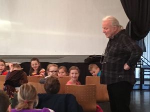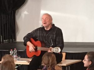 Gleich am ersten Schultag nach den Faschingsferien besuchte der Kinder- und Jugendbuchautor Martin Auer unsere Erstklässler. Er ist ein Multitalent, arbeitet als Liedermacher, Schauspieler, Kabarettist, Schriftsteller und Geschichtenerzähler. Seine Lesung untermalte er mit Gitarre und jeder Menge selbstgeschriebenen Liedern, wie z.B. mit dem Lied von der Buchstabensuppe.
