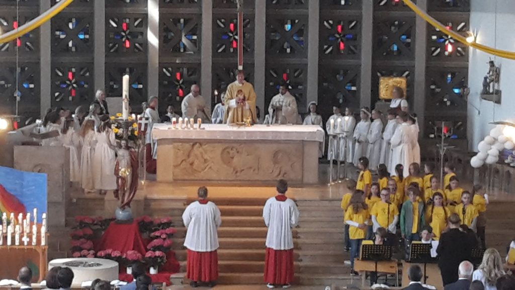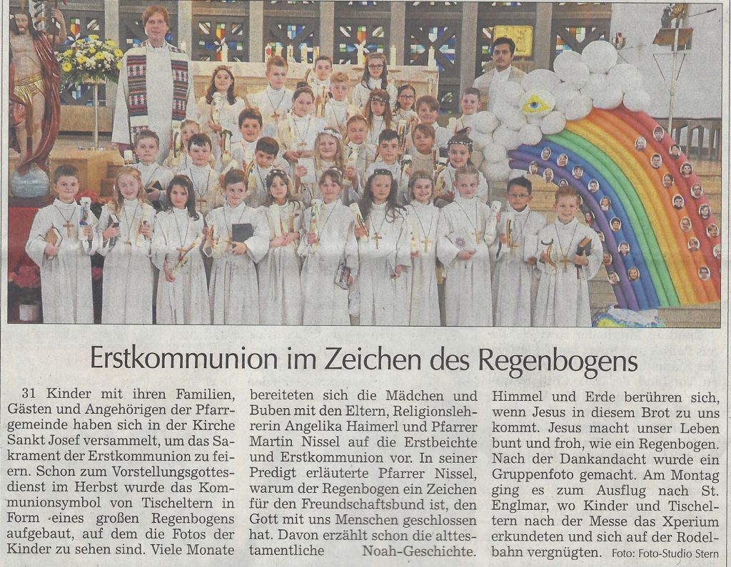 Am Sonntag, den 22. April, feierten die Erstkommunionkinder von St. Josef ihre Hl. Erstkommunion. Mit einem vom Kinderchor und den Kindern selbst mitgestalteten feierlichen und prächtigen Gottesdienst in der festlich geschmückten Pfarrkirche wurde der Kommuniontag zu einem ganz besonderen Tag im Leben der Drittklässler.