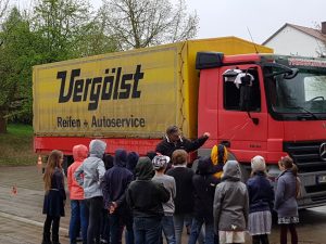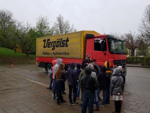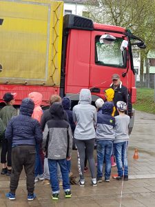 Im Rahmen des Verkehrsunterrichtes lernten die Schüler der Klassen 4C und 4D die Problematik des Toten Winkels in der Praxis kennen.