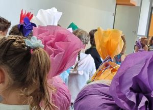 Pinkes, oranges oder auch lila Krepppapier hat dafür gesorgt, dass die Überraschung in den Schultüten noch ein Geheimnis bleibt.