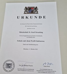 Neues Schulprofil Inklusion16. Oktober 2022Ehrung für das neue Schulprofil Inklusion im Kultusministerium. Zurück zur Übersicht