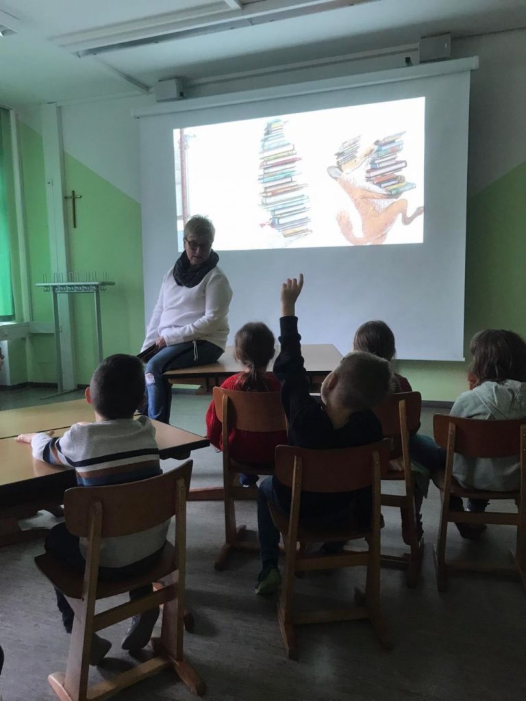Im November durften die Erstklässler der Grundschule St. Josef I und II zum ersten Mal Schulbibliotheksluft schnuppern. Zusammen mit Fuchs, Maus und Huhn erklärten Frau Emmer (St. Josef I) und Frau Schmidt-Kamchen (St. Josef II), Mitarbeiterinnen der Stadtbibliothek im Salzstadel und zuständig für unsere Schulbüchereien, den Kindern, was eine „Pippilothek“ ist und wie das mit dem Ausleihen überhaupt funktioniert. Zum Schluss händigten sie allen Schülerinnen und Schülern ihre nagelneuen Büchereiausweise aus. Ab sofort können die jungen ABC-Schützen regelmäßig alle 2 Wochen in der Schulbibliothek (und ebenso in der Stadtbibliothek im Salzstadel) Bücher ausleihen, um das Lesen zu vertiefen. Viel Spaß dabei!