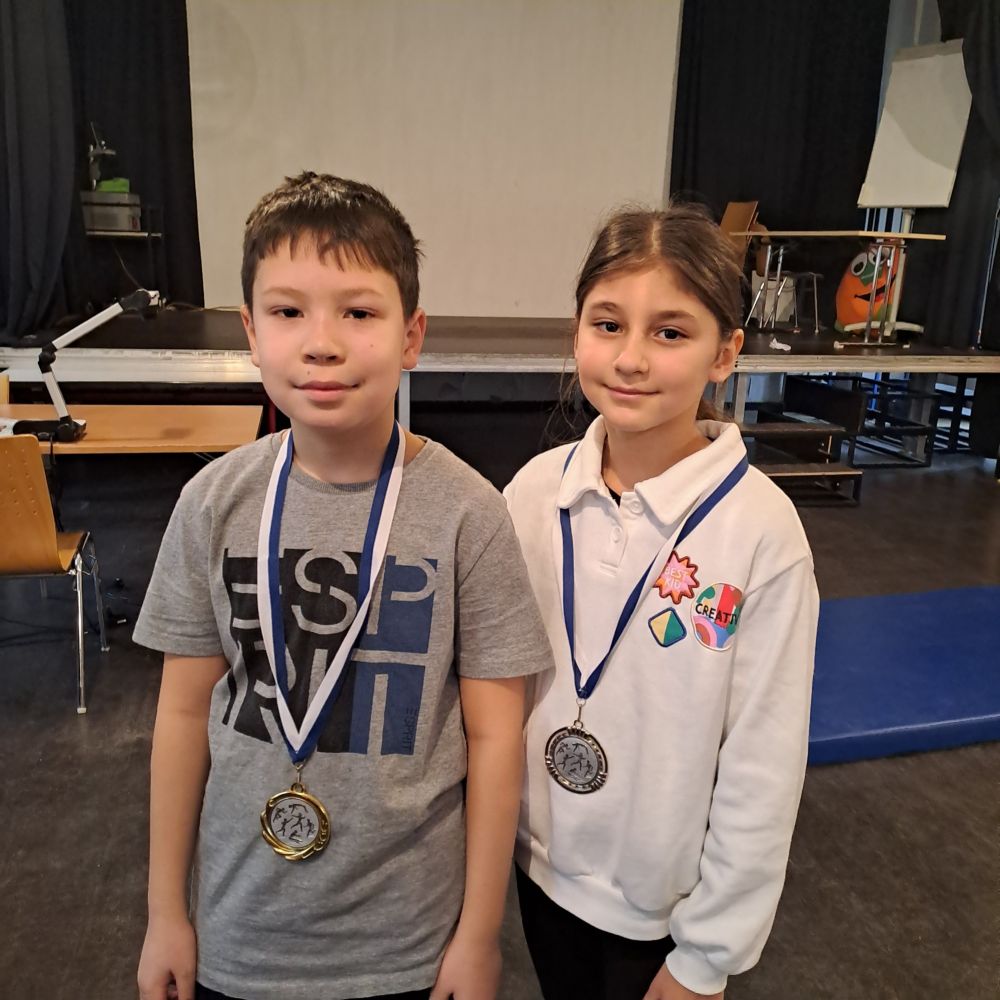 In der Grundschule setzte sich Ewald Siegert aus der 4c die Krone des Champions auf. Auf den Plätzen folgten Oskar Ackermann (3b) und Warlem Yemtsev aus der 2b. Bei den Mädchen der Grundschule gab es ein Kopf-an-Kopf-Rennen zwischen Nina Weckmann (3b) und Eva Syniavska (4a), das Nina Weckmann ganz knapp für sich entscheiden konnte. Mit einer tollen Leistung erreichte Elda Sylanai (2c) den dritten Platz.