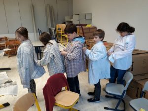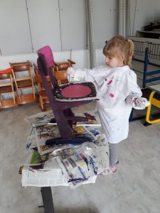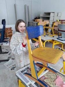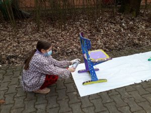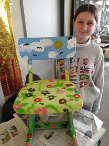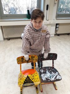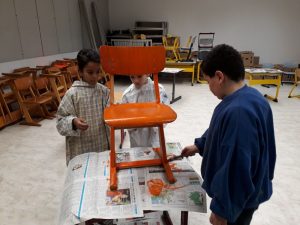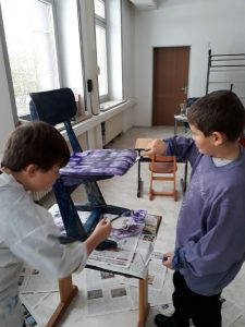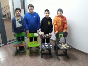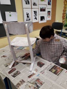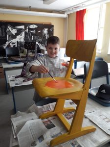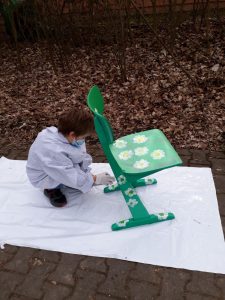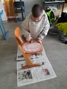 Viele fleißige Schülerinnen und Schüler gestalten während ihrer Freizeit alte Holzstühle zu neuen kleinen Kunstwerken. Es wird mit Schleifpapier sorgfältig vorbereitet bevor die Stühle individuell gestaltet und lackiert werden. Einige Stühle werden Platz in den Klassenräumen für besondere Aktionen finden. Ein anderer Teil der Kunstwerke wird beim diesjährigem Schulfest zum Kauf angeboten. Nachfolgende Bilder geben Einblick in die kleine Kunstwerkstatt, welche im Rahmen der Jugendsozialarbeit an Schulen derzeit an Josef 1 und Josef 2 stattfindet.