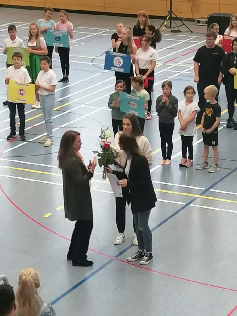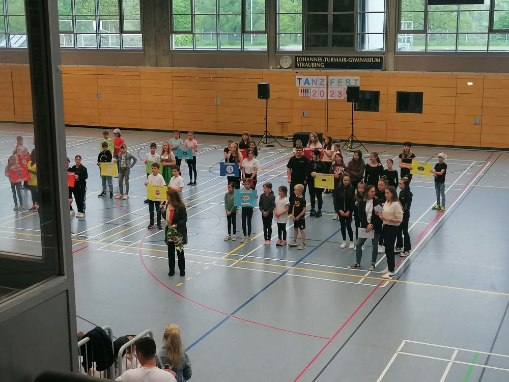 Nach langer Pause konnte das jährliche Tanzfest in der Dreifachturnhalle am Peterswöhrd endlich wieder stattfinden. Die beiden Organisatorinnen, Patrizia Wolff, GMS St. Josef, und Iris Semmelmann, MS Alburg, haben sich sehr über die zahlreiche Teilnahme mit über 400 Schüler*innen aus Stadt Straubing und Landkreis Straubing-Bogen gefreut. Ein großer Erfolg war auch die Teilnahme der Brückenklasse der MS St. Josef, geleitet von Larisa Segal, die gleich zwei traditionelle und einen Modern Dance mit selbst gestalteten T-Shirts aufgeführt haben. Unterstützung gab es auch von Annette Vogel, welche einen Tanz in Kombination mit der 4-ten und 5-ten Jahrgangstufe aufgeführt hat. Auch die GS St. Josef 2 hatte mit „Shivers“ einen großen Auftritt.