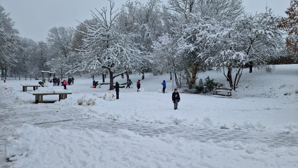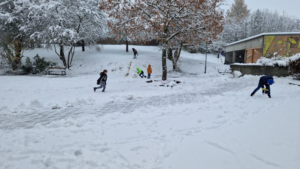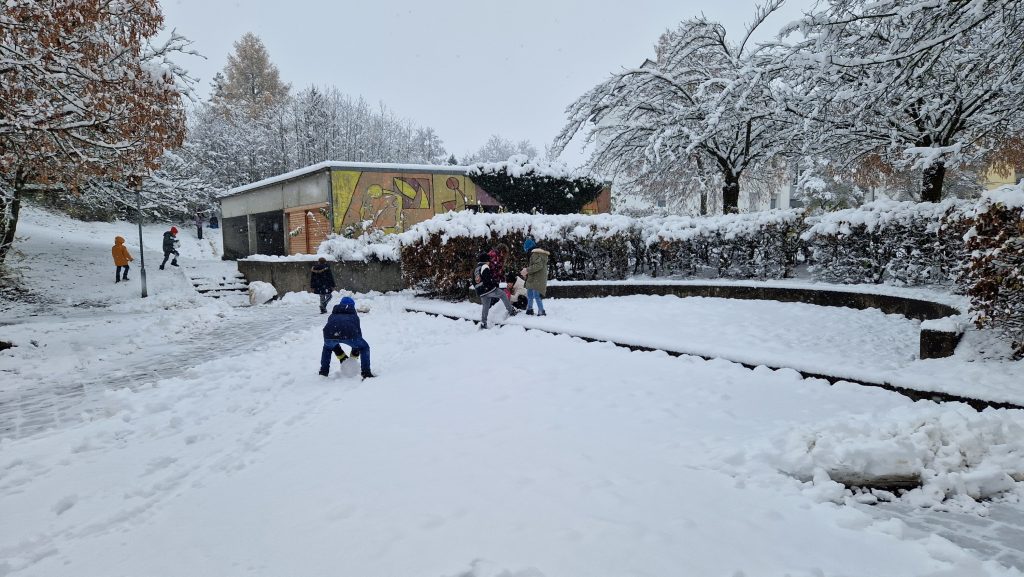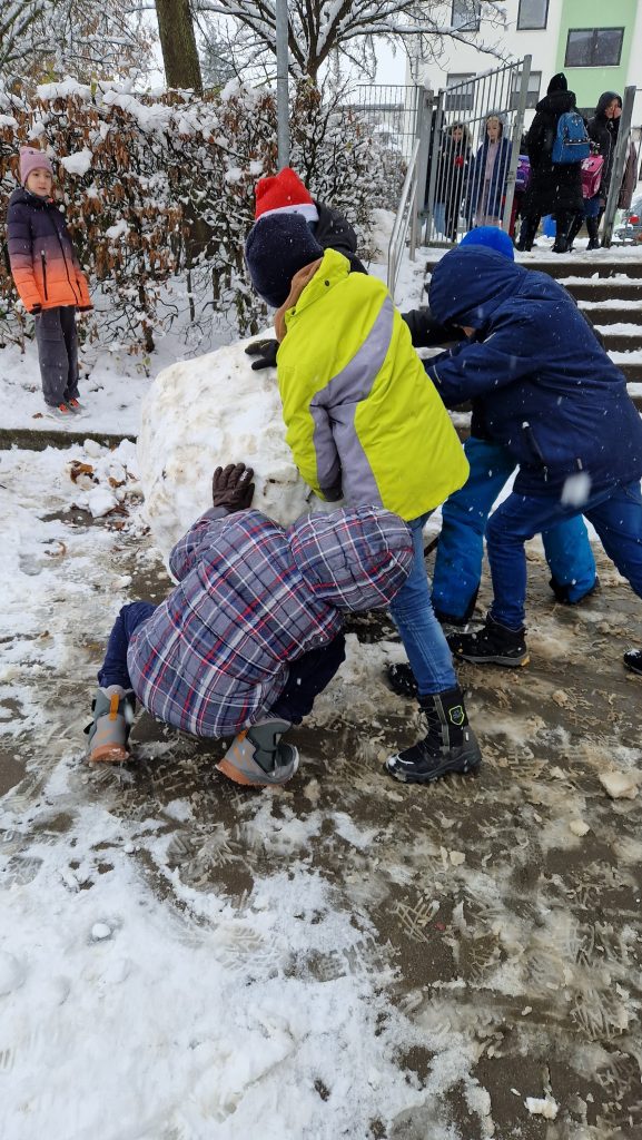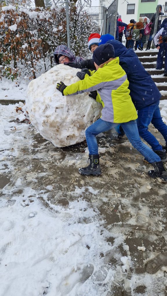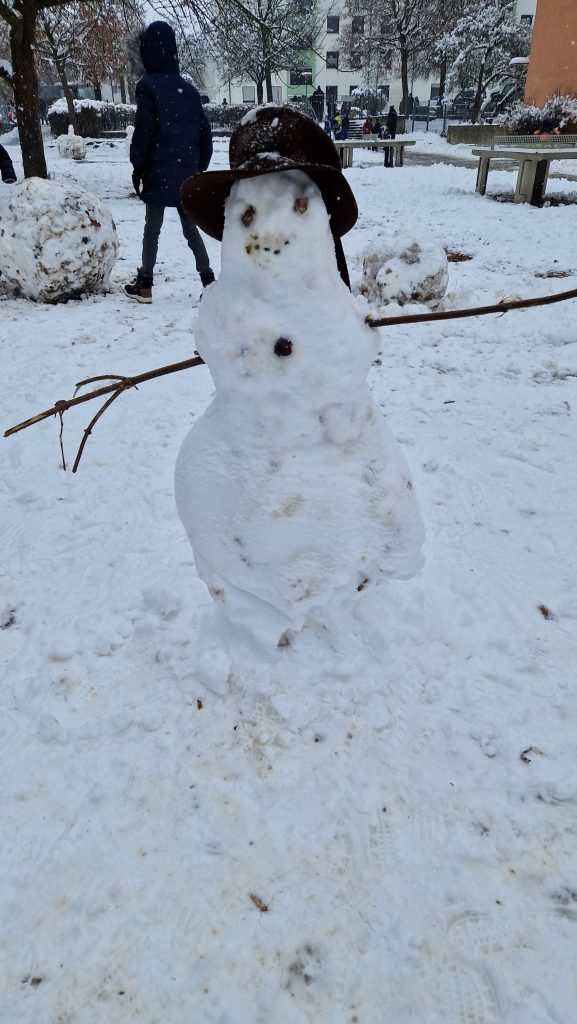 Die Pause war viel zu kurz. Die Schneemänner sind nicht alle fertig geworden.
