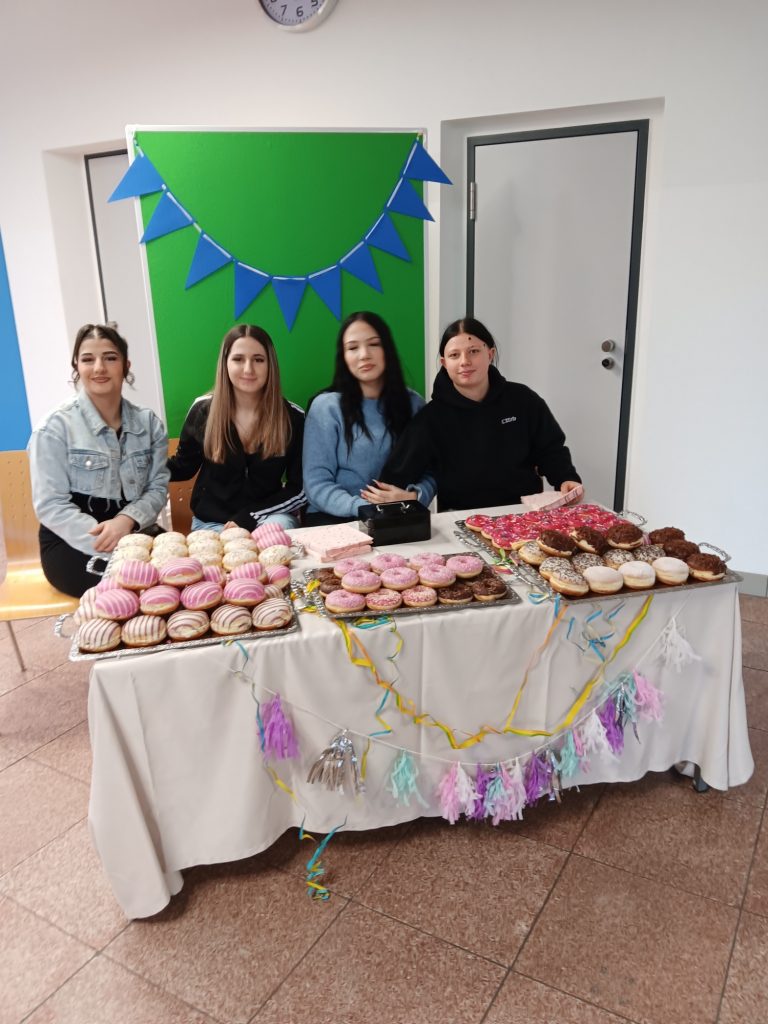 Der Unsinnige Donnerstag wurde auch dieses Schuljahr wieder groß gefeiert. Viele Schüler*innen und auch Lehrkräfte kamen mit tollen Verkleidungen an die Schule. Die SMV verkaufte in der großen Pause bunte Krapfen und Donuts. Das Angebot kam auch dieses Jahr wieder sehr gut an.